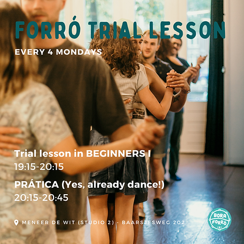 Learn the fun popular Brazilian partner dance with us! With the sounds of accordion, zabumba (drum) and triangle, forró is what you make out of it. From slow-dancing to fast movements on the dance floor, this dance has something for everyone! This trial lesson is available at the start of our 4-week beginners course. You will learn the fundamentals needed for all your future forró classes. With these basics you will already be knowing your way around the dance floor. Come along, by yourself, with a partner or with some friends, and dance with us! Wear comfortable and flat shoes - leaders AND followers.